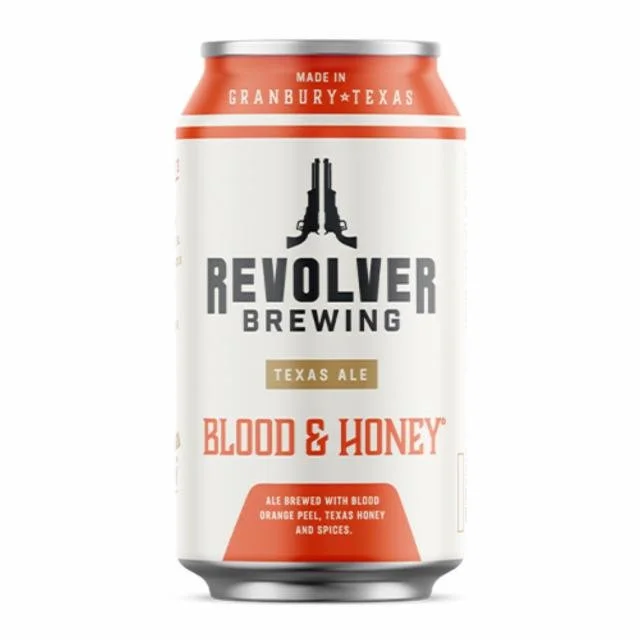 Revolver Blood & Honey is a smooth, unfiltered wheat ale brewed with Texas honey, blood orange peel, and a touch of spice. It pours a hazy golden color and delivers a balanced mix of light sweetness, bright citrus, and soft, bready malt. Refreshing yet flavorful, it’s an easy drinking beer with a distinctive Texas character.