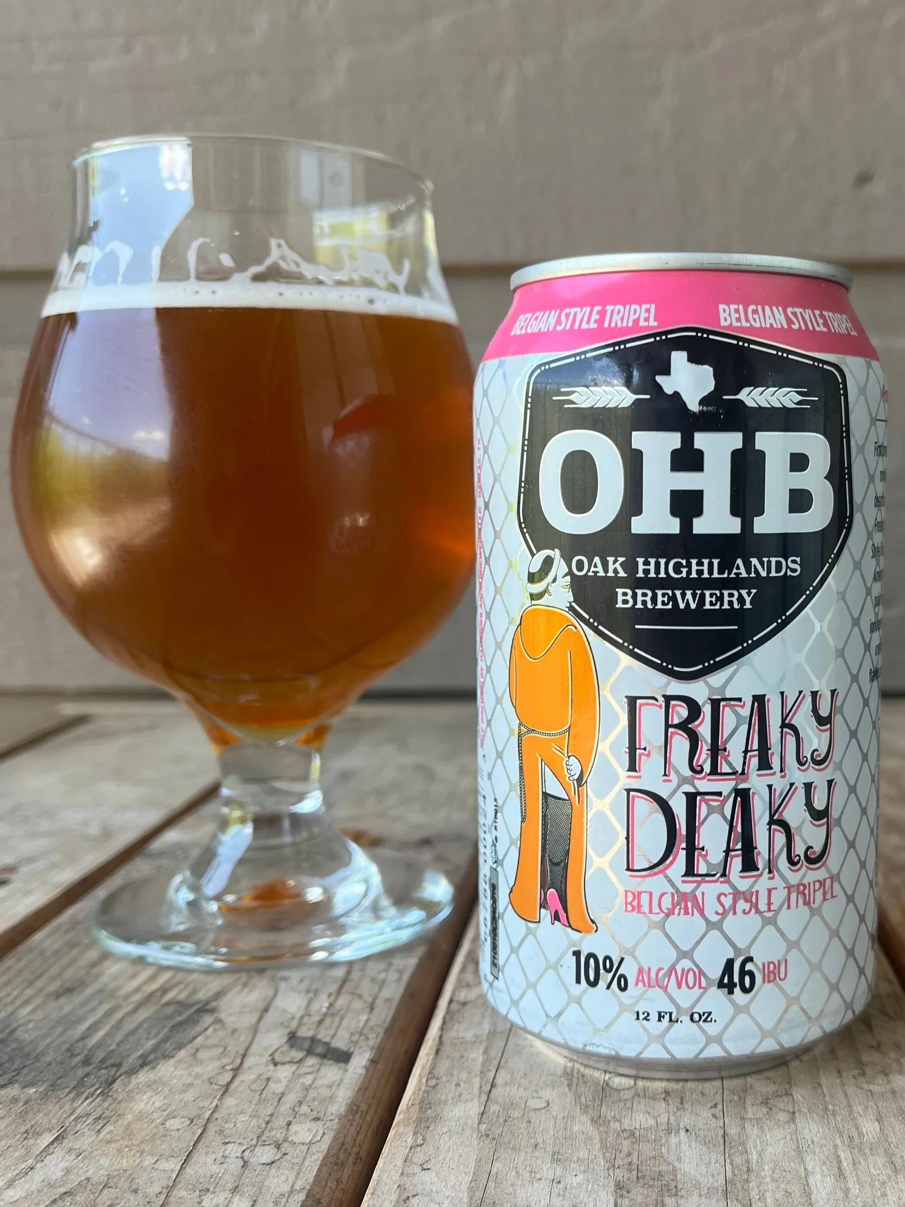 OHB Freaky Deaky is a bold Belgian-style tripel with smooth malt sweetness and classic Belgian yeast notes of clove, banana, and light citrus. Well-balanced and surprisingly easy-drinking for its higher ABV, it delivers rich flavor with a clean, dry finish.